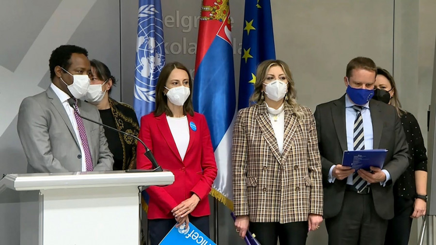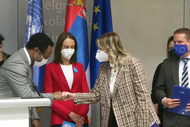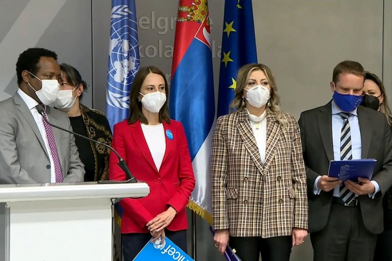 Vakcine iz EU dočekali su na aerodromu ministar za evropske integracije Jadranka Joksimović, zamenik direktora Svetske zdravstvene organizacije dr Mengistu Abebauehu Asefa, direktorka Unicefa u Srbiji Dejana Kostadinova i šef političkog sektora Delagacije Evropske unije u Srbiji Dirk Lorenc.