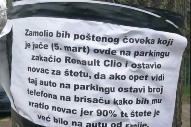 - Civilizacijo, od komšije koji se ispovraćao kroz prozor na komšijske limove, možemo očekivati i da će nuždu izvršiti kroz prozor. Komšije, operez! Hvala - napisao je, očigledno besan, stanar zgrade u kojoj se dogodila ova neprijatnost.