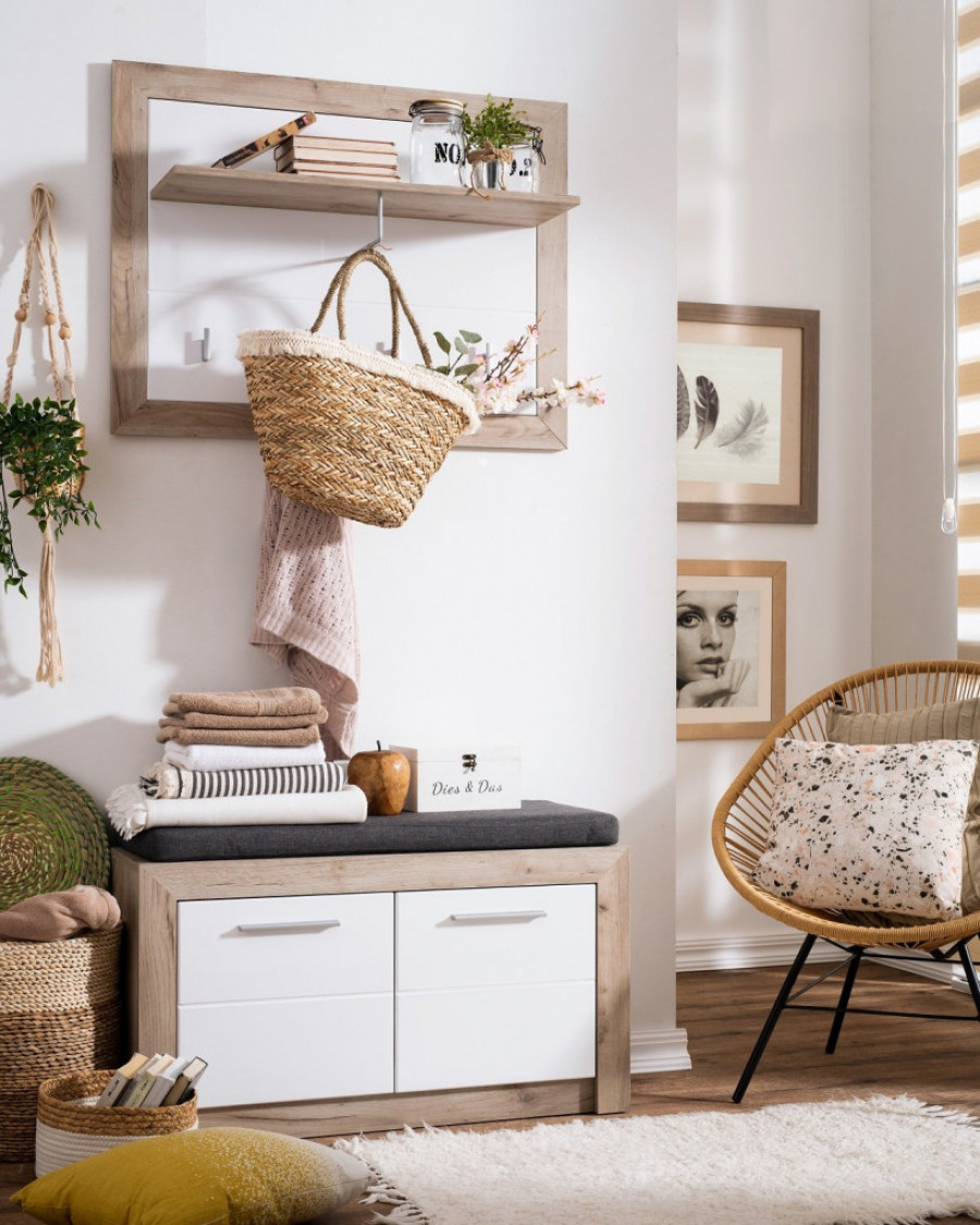 Ako je ulazak u vaš dom baš mali, predlog je da odaberete čiviluk i deo za cipele. Dodatni prostor za odlaganje obezbediće vam pletene korpe, a ujedno će poslužiti i kao dekoracija. Kako na malom prostoru nema mesta za još dodatnih komoda, polica, ormara, možete postaviti slike na zid i na taj način postići posebnu dinamiku. Biljke su uvek prelep dodatak, a možete i njih da okačite na zid, umesto da ih stavite na pod.