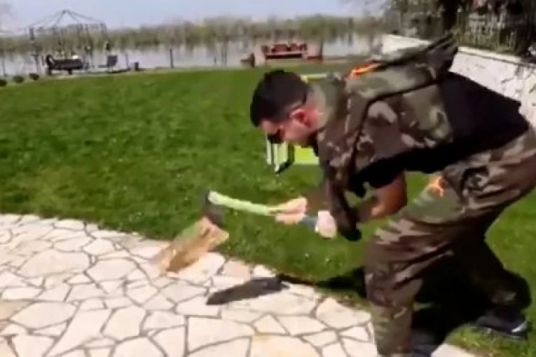 Mladić iz Srbije, odeven u maskirnu trenerku, postao je pravi hit na društvenim mrežama, nakon što se pojavio video snimak na kojem se vidi njegov neslavni pokušaj cepanja drva.