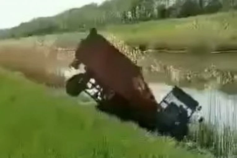 Međutim, vozač je očigledno pogrešno procenio snagu svog malog traktora, a potom je za svega nekoliko sekundi naočigled okupljenih meštana završio u obližnjem kanalu sa vodom.