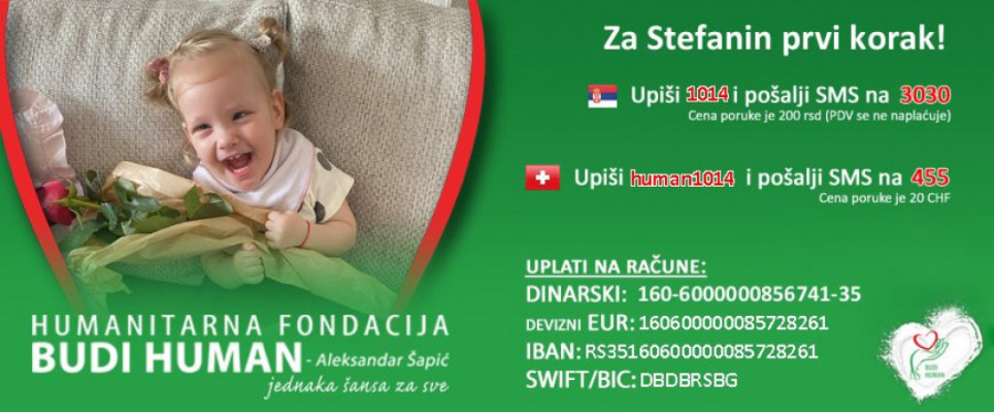 Humanitarna fondacija BUDI HUMAN - Aleksandar Šapić prikuplja novčana sredstva za Stefani Stojnić (2019).