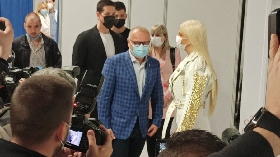 Reporteri, kamermani, snimatelji... Svi su se skupili kako bi dočekali Jelenu Karleušu koja se odmah nakon primljene vakcine u neformalnom razgovoru poverila zameniku gradonačelnika Beograda Goranu Vesiću da je veći strah imala od medijskih reportera nego od vakcine.