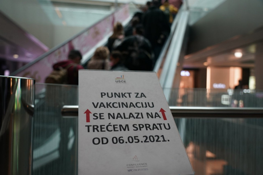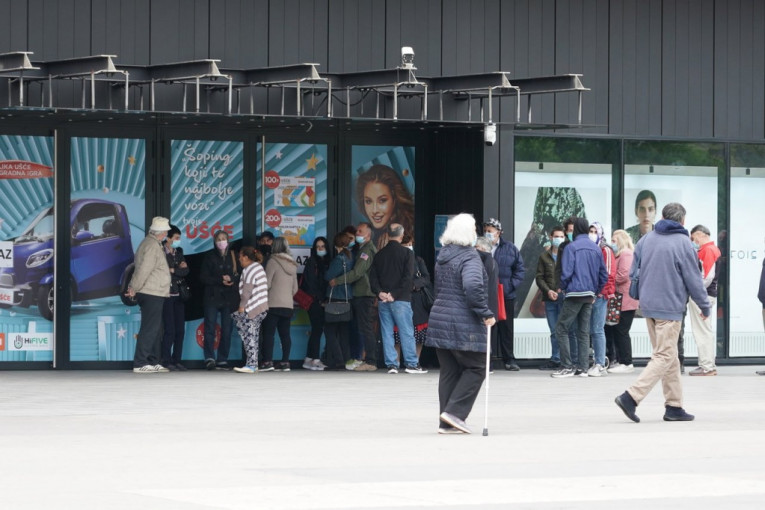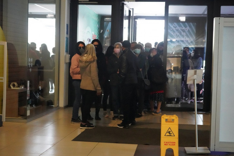 Ogromne gužve potom su se premestile i unutar tržnog centra. Dugački redovi formirali su se hodnicima i pokretnim stepenicama ispred samog vakcinalnog punkta.