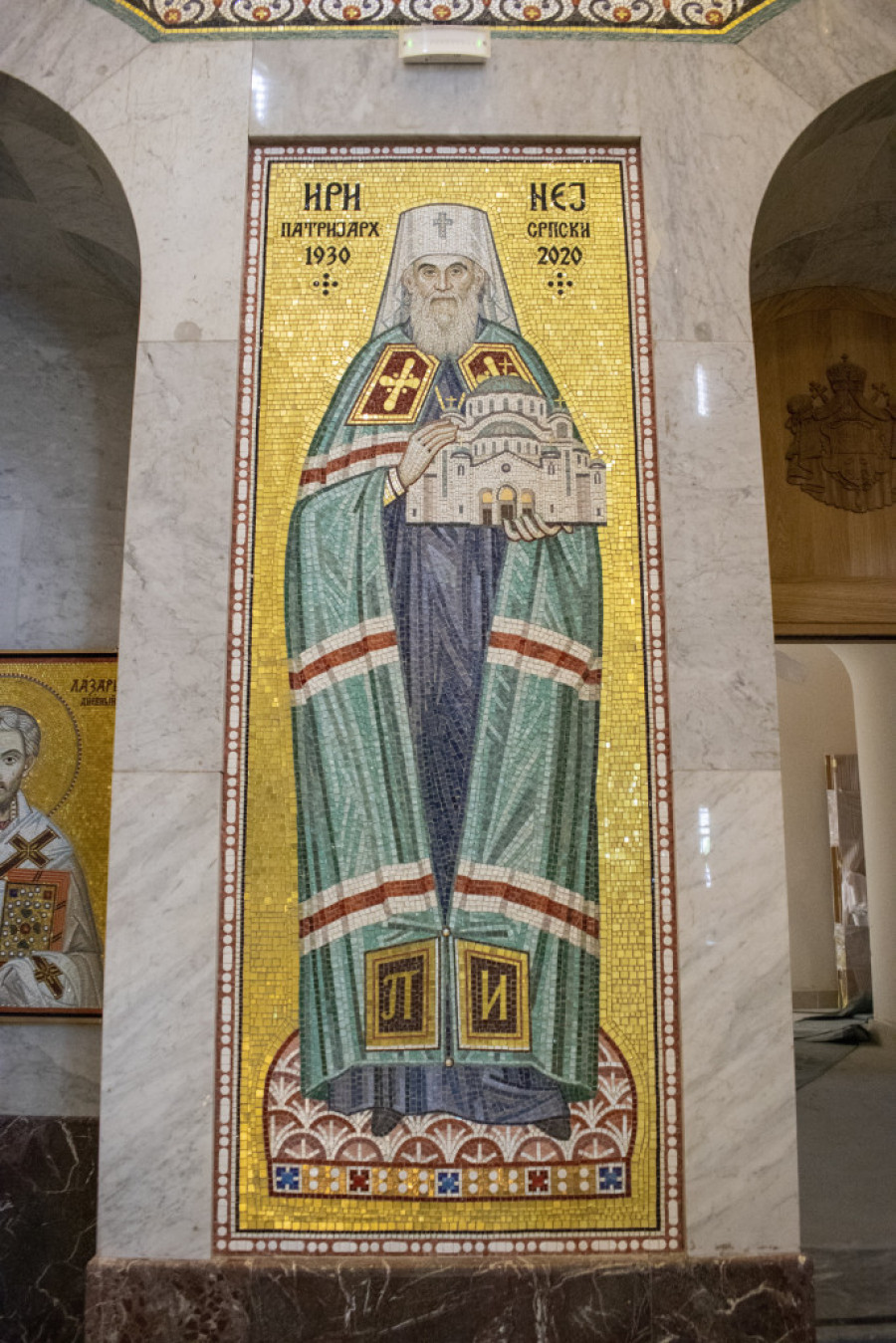 Unutrašnjost Hrama Svetog Save ubuduće će krasiti i dva mozaika sa likom blaženopočivšeg patrijarha Irineja koji je jedan od najzaslužnijih za završetak radova ove velelepne pravoslavne svetinje, čija je izgradnja započeta pre više od 100 godina.
