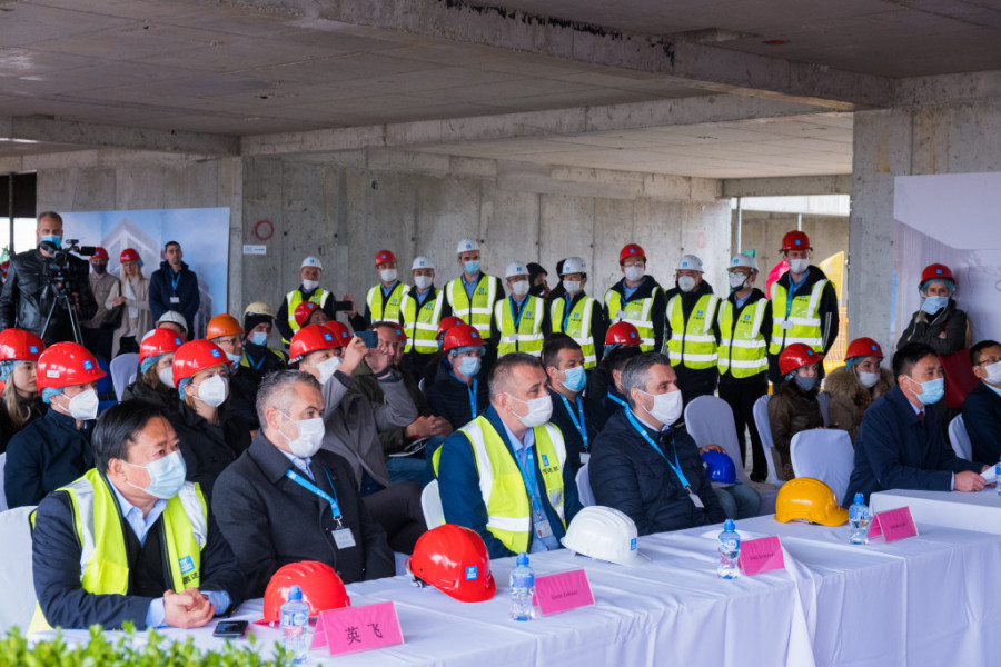 Uprkos lošem vremenu, brojne zvanice i predstavnici medija odazvali su se pozivu na proslavu završetka betonske konstrukcije impozantnog kompleksa ZepTerra na Novom Beogradu