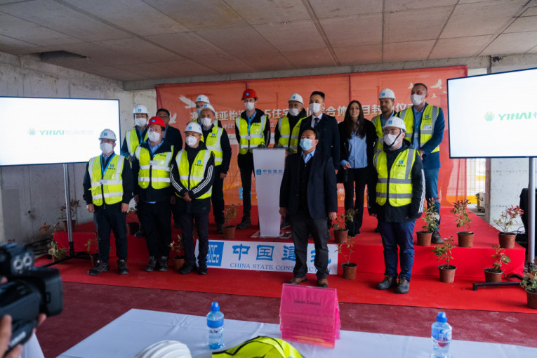 Foto: PromoIspred investitora Yihai Properties Group, tom prilikom prisutnima se obratio Baoyuan Sun, koji je objasnio da se u Kini veruje da kiša donosi napredak i naglasio da će se nastavak radova odvijati po planu.