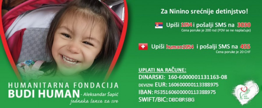 Humanitarna fondacija BUDI HUMAN - Aleksandar Šapić prikuplja novčana sredstva za Ninu Vođević (2017).