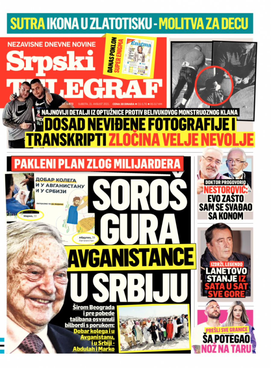 Srpski telegraf u štampanom izdanju za SUBOTU 21. avgusta donosi pregršt važnih i interesantnih priča.
