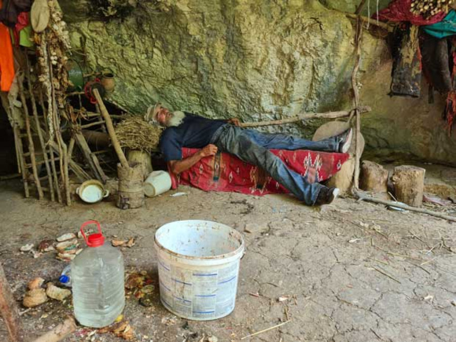 Nailazimo na putu na Pantu, koji nam je objasnio da se vraća iz samoposluge, kako naziva kontejner u kojem je skupio ostatke namirnica za životinje koje čuva oko svoje pećine i o kojima brine.