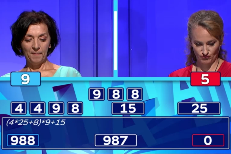 Kada je na red došao Moj broj plava takmičarka je prijavila je broj 988, međutim, korišćenjem njenog postupka računar je izračunao 987.