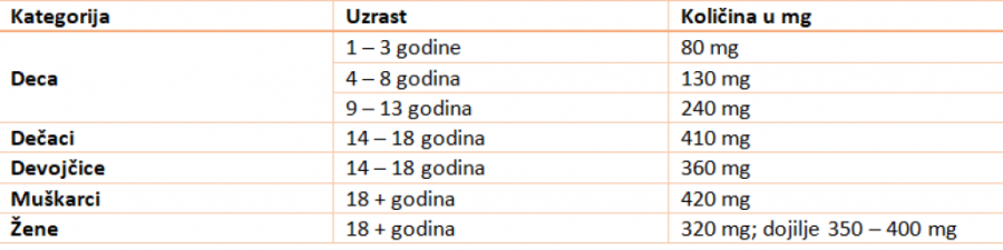 Preporučeni dnevni unos magnezijuma6, u zavisnosti od životne dobi, iznosi: