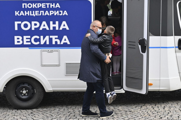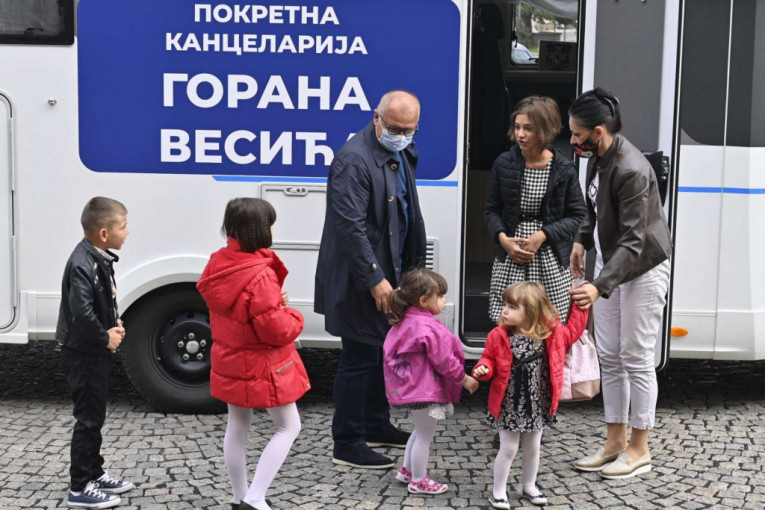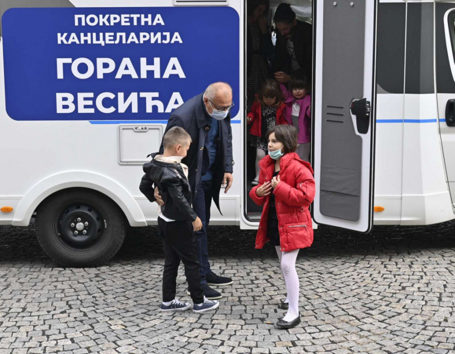 Zamenik gradonačelnika Beograda Goran Vesić ugostio je danas u Starom dvoru samohranu majku Jelenu Dimić sa petoro dece koja je dobila posao gerontodomaćice u Surčinu, čime je ispunjeno obećanje koje je dobila pre tri nedelje kada je njenu porodicu posetio Vesić sa svojom Pokretnom kancelarijom.