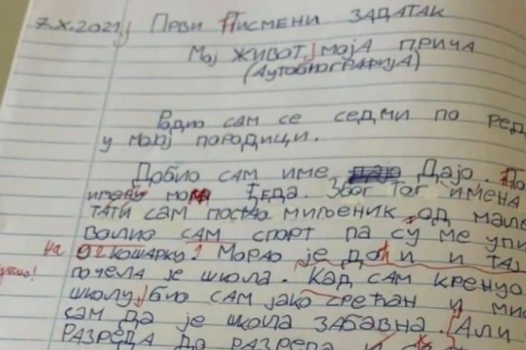 Tviteraše širom regiona nasmejao je i zabavio pismeni zadatak malog Daje na temu Moj život, moja priča u kojem je mališa najiskrenije napisao šta misli o školi onako uopšteno.
