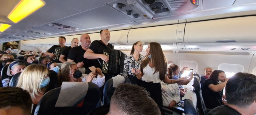 Verovatno je do sada bilo slučajeva da se zapeva u avionu ali da se zaigra srpsko kolo sigurni smo da se to prvi put desilo sada.