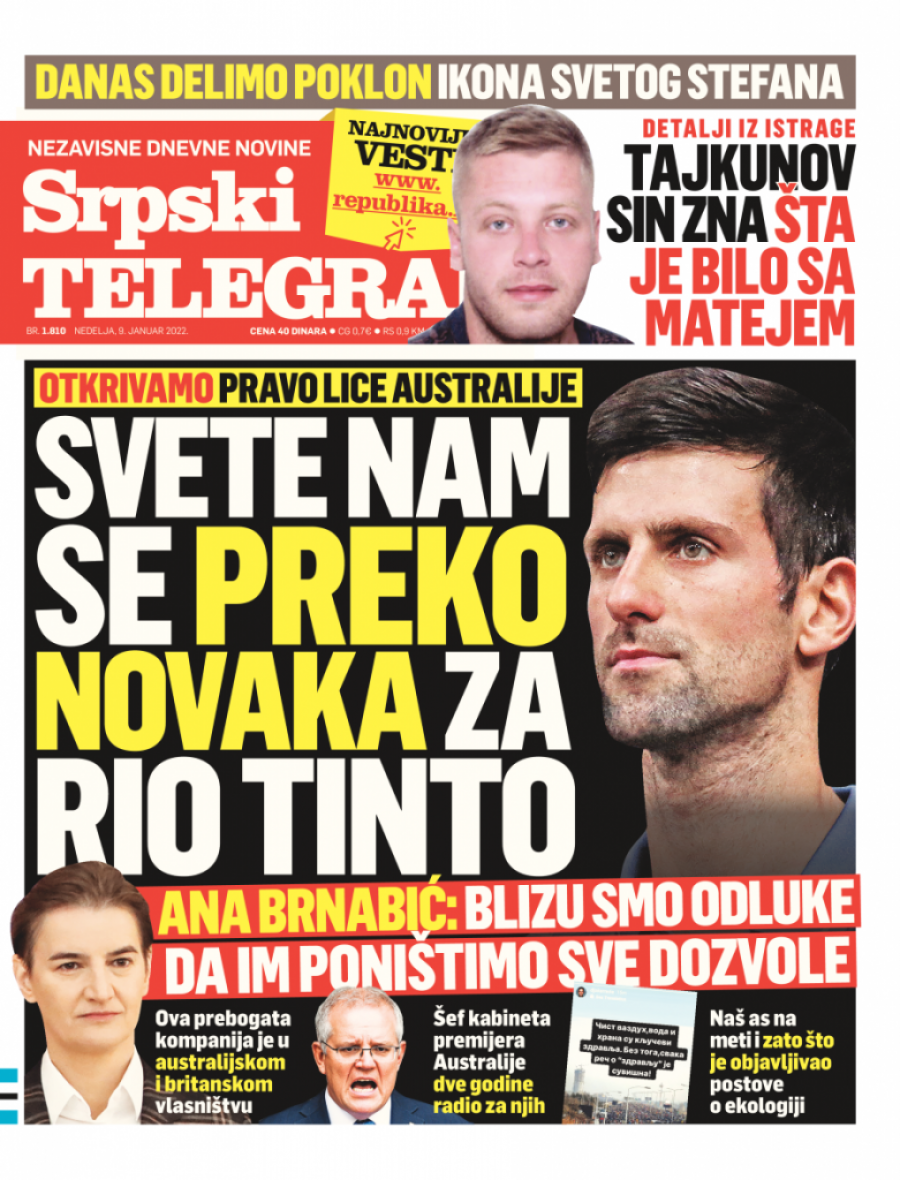 Srpski telegraf u štampanom izdanju za nedelju 9. januar donosi pregršt važnih i interesantnih priča.