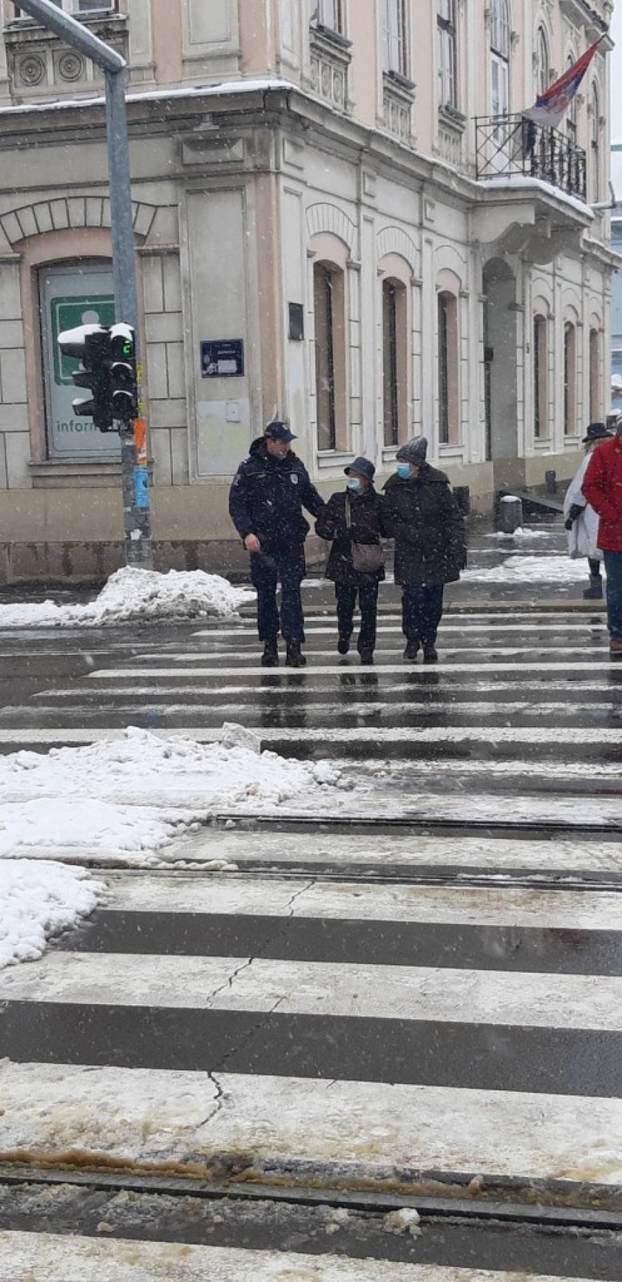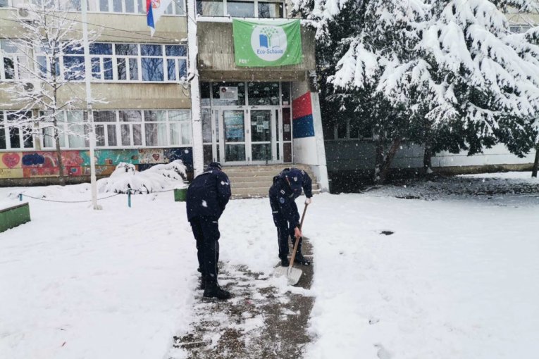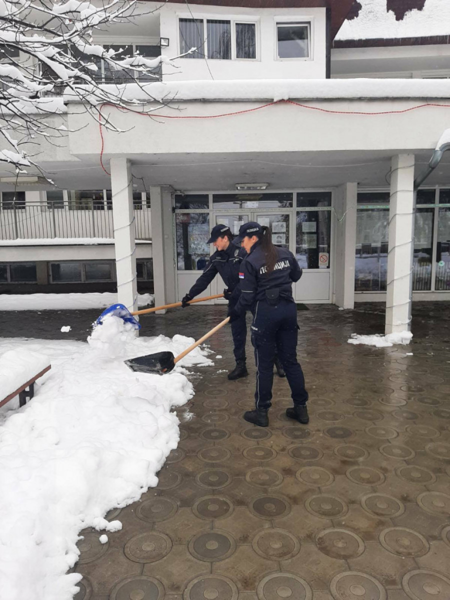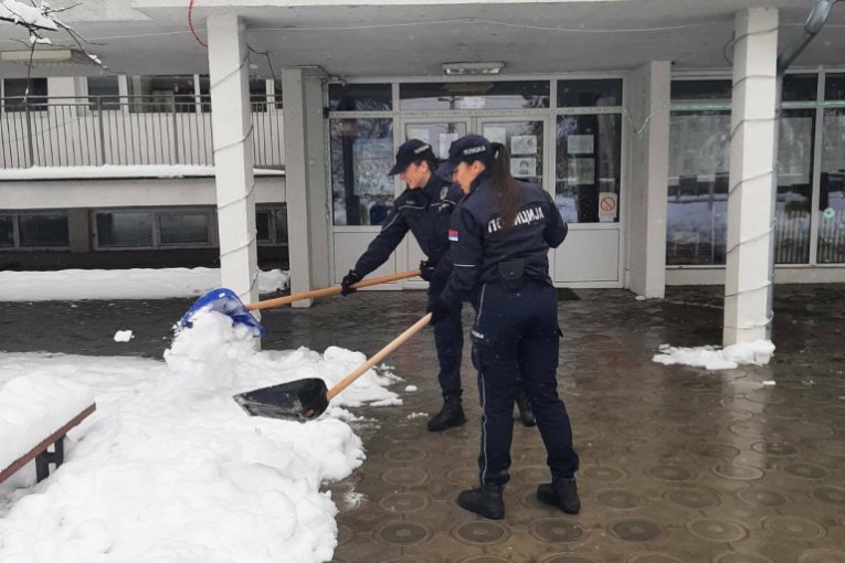 Pored redovnih obaveza koje policajci svakodnevno obavljaju, usled lošeg vremena doneli su odluku da u pomoć priteknu i svojim sugrađanima a naročito onim starijim. Te su uzeli lopate i metle u šake i raskrčili puteve do školskih i predškolskih ustanova a u pomoć su pritekli i onima kojima je trebala, da pređu ulicu ili siđu niz stepenice.