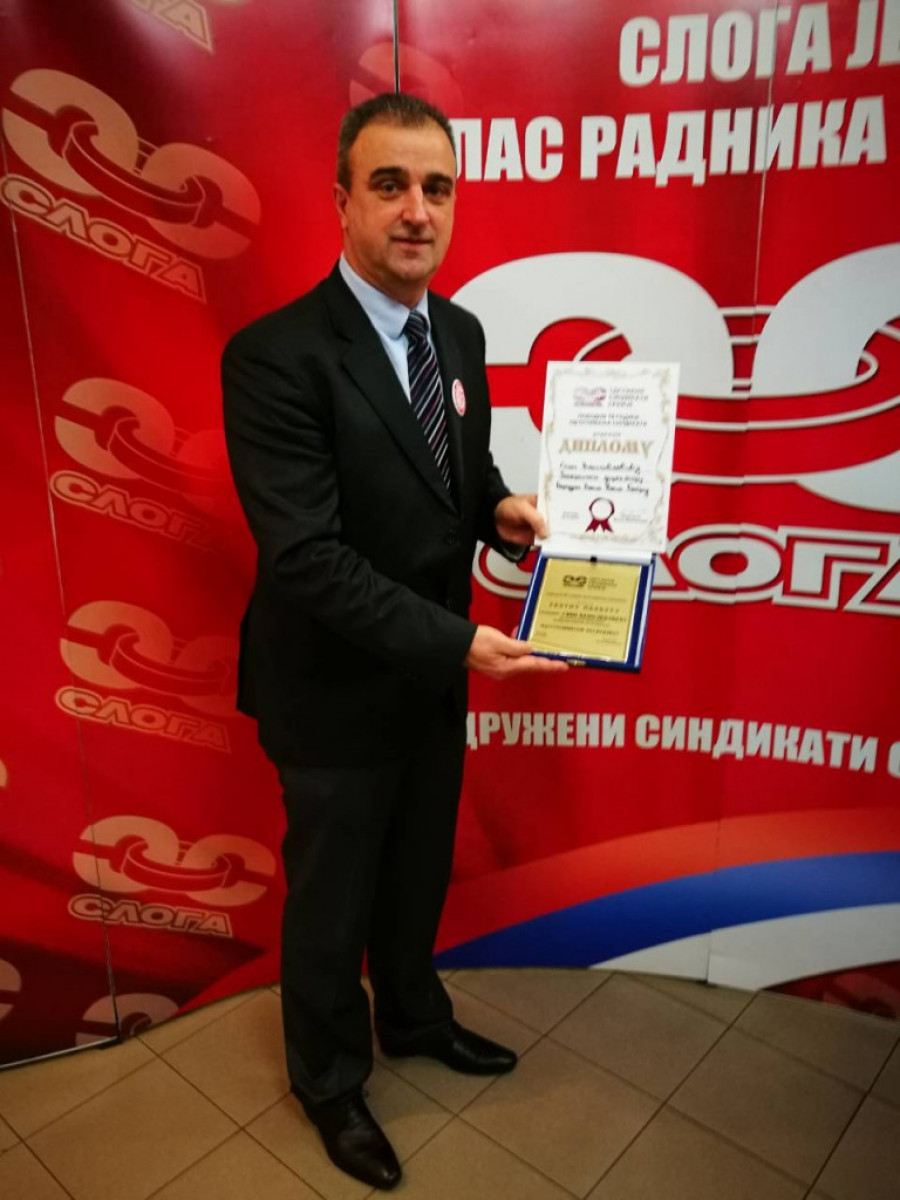 V.d. generalnog direktora AD Aerodrom Nikola Tesla Beograd Saša Vlaisavljević, dobitnik je zlatne plakete za najuspešnijeg poslodavca koju dodeljuju Udruženi sindikati Srbije "Sloga".