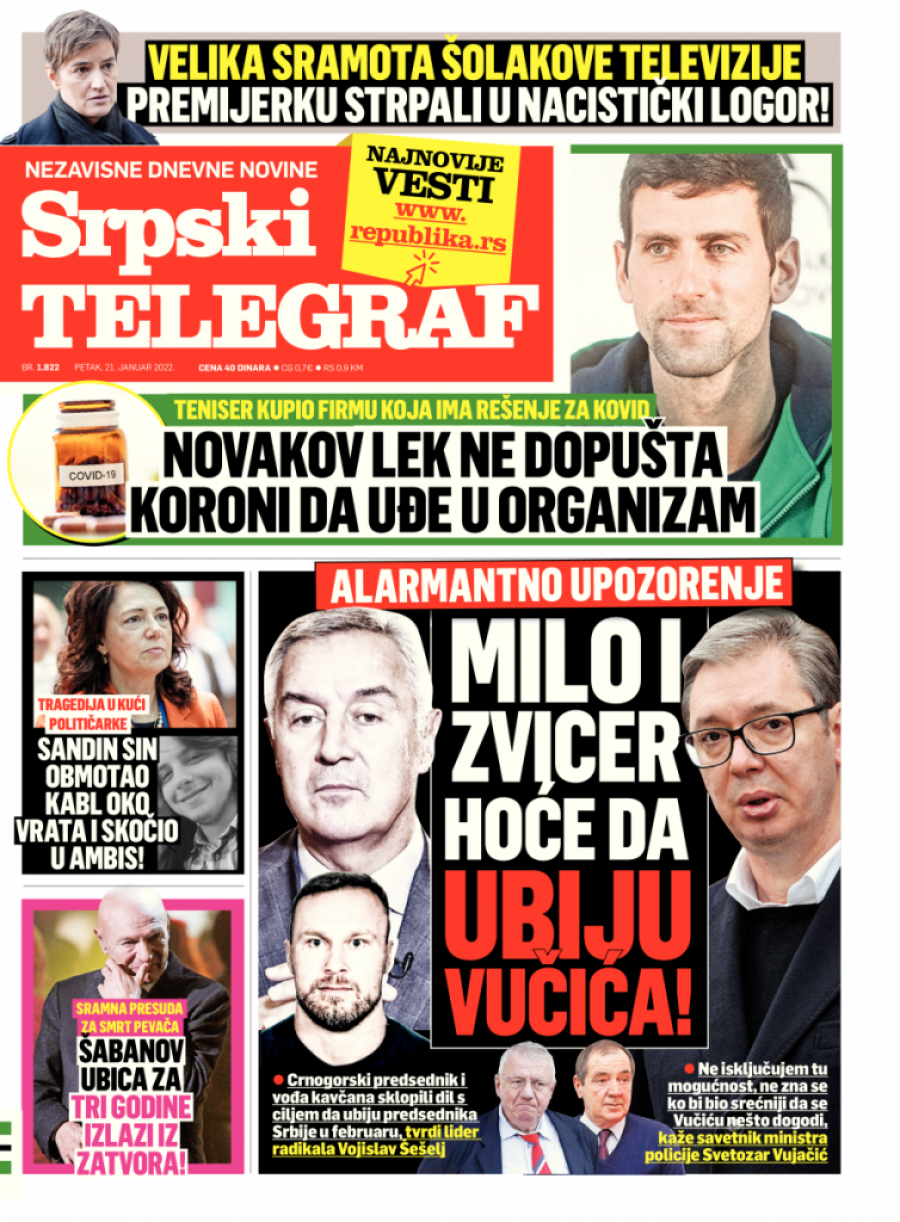 Srpski telegraf u štampanom izdanju za petak 21. januar donosi pregršt važnih i interesantnih priča.