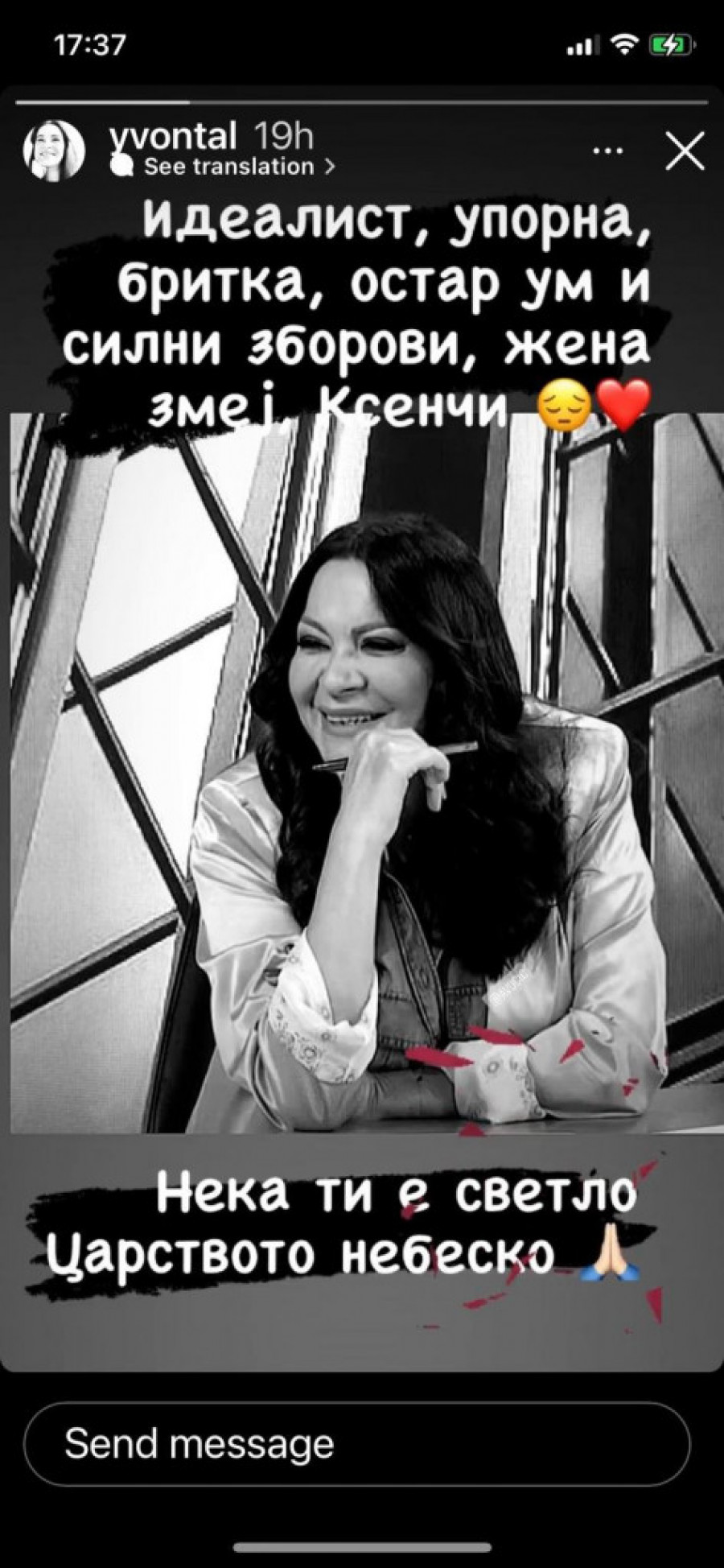 - Idealista, uporna, britka, oštrog uma i jakih reči, žena zmaj, Ksenči. Neka ti je svetlo Carstvo nebesko - piše Talevska na Instagramu.