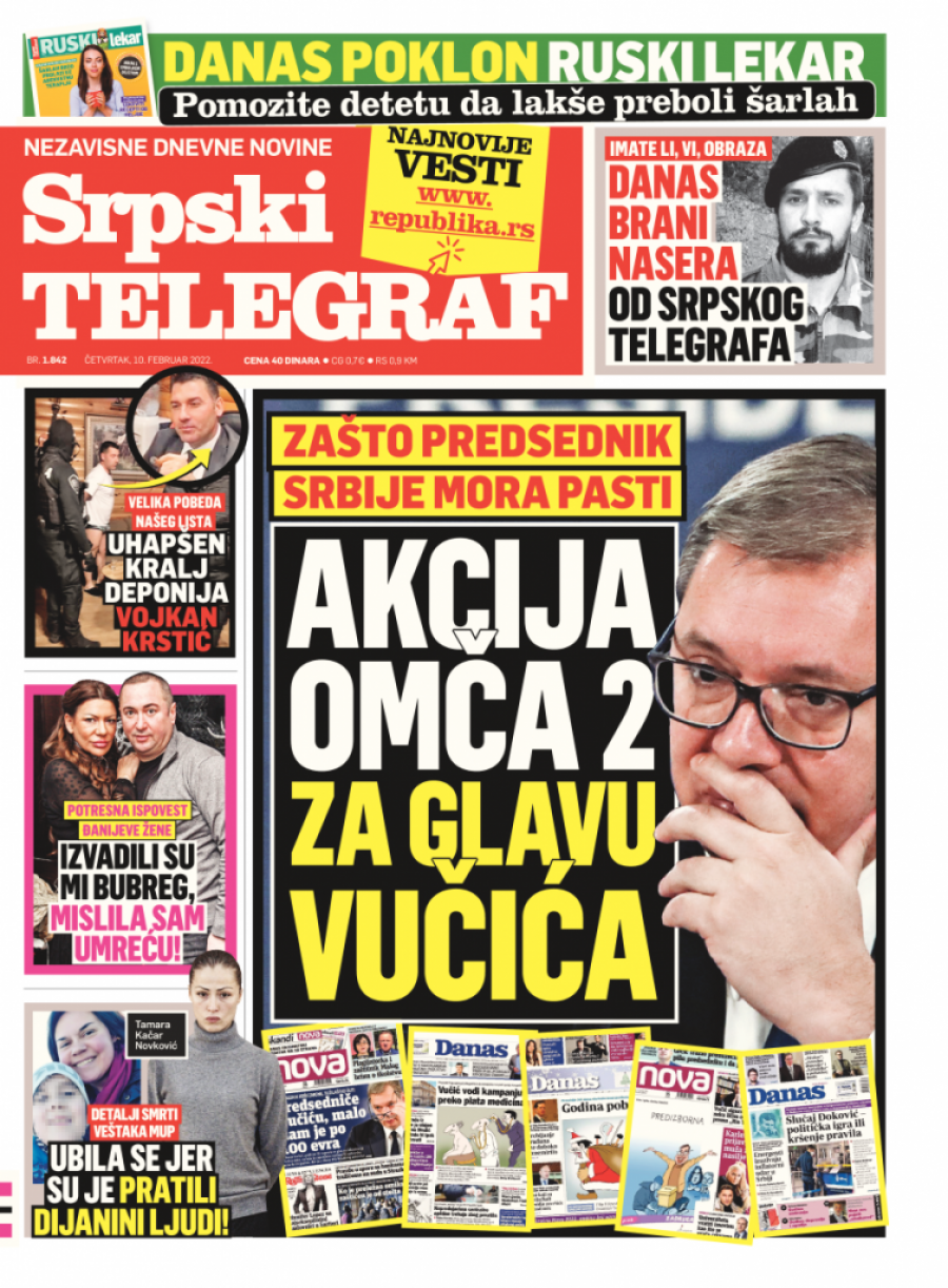 Srpski telegraf u štampanom izdanju za četvrtak 9. februar donosi pregršt važnih i interesantnih priča.