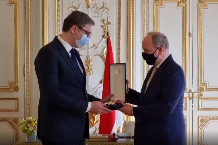 Knez Albert II od Monaka uručio je predsedniku Republike Srbije Aleksandru Vučiću orden Velikog krsta reda Svetog Šarla, najviše odlikovanje ove kneževine