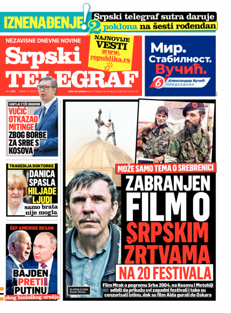 ZABRANJEN FILM O SRPSKIM ŽRTVAMA: Dvadeset festivala ne dopušta "Mrak" ČITAJTE U SRPSKOM TELEGRAFU!