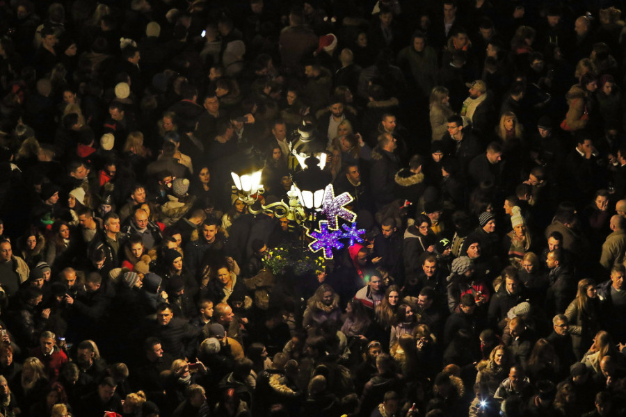Bilo je veselo, ali uz puno pirotehnike, za koju je bio oslobođen deo trga kako ne bi došlo do povređivanja.