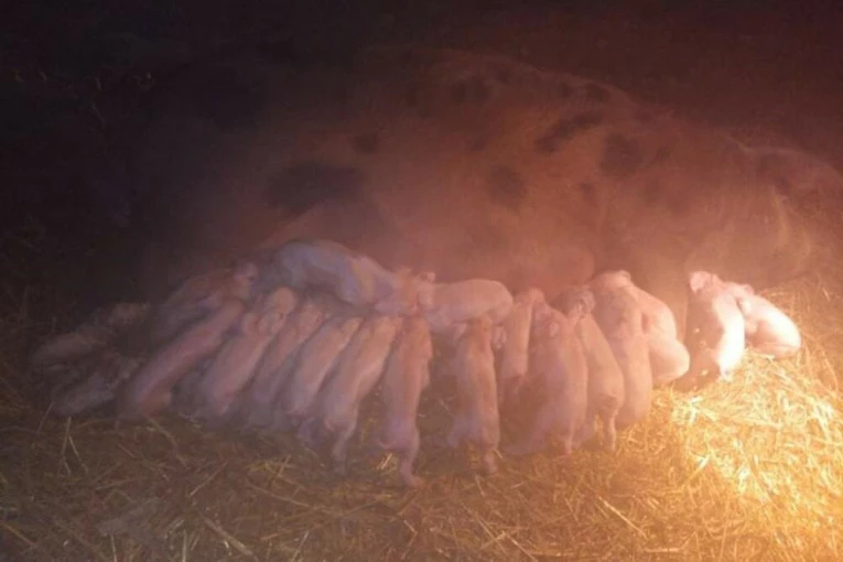 - Krmača je za noć oprasila čak 22 prasića, što stvarno predstavlja rekord u mojoj karijeri, dešavalo se da putem veštačke oplodnje donesu dvocifren broj životinja na svet, ali ovo je stvarno izuzetak, jako retka pojava. Izašli smo na ta teren i konstatovali da je sve prošlo u najboljem mogućem redu i da su svi prasići zdravi - kazao je za RINU veterinar Aleksandar Veljanovski.