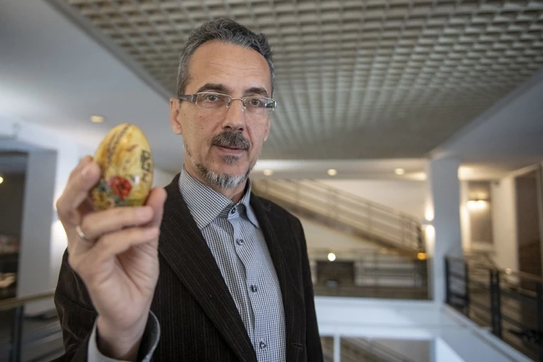 - To su radili kovači. Umetali bi sitne eksere i na njih kačili potkovicu. Suština je bila da pokažu svoju umešnost - da jaje potkuju, a da se ono ne slomi. Zaista, unutrašnji sadržaj je i dalje tu - pokazuje nam.
