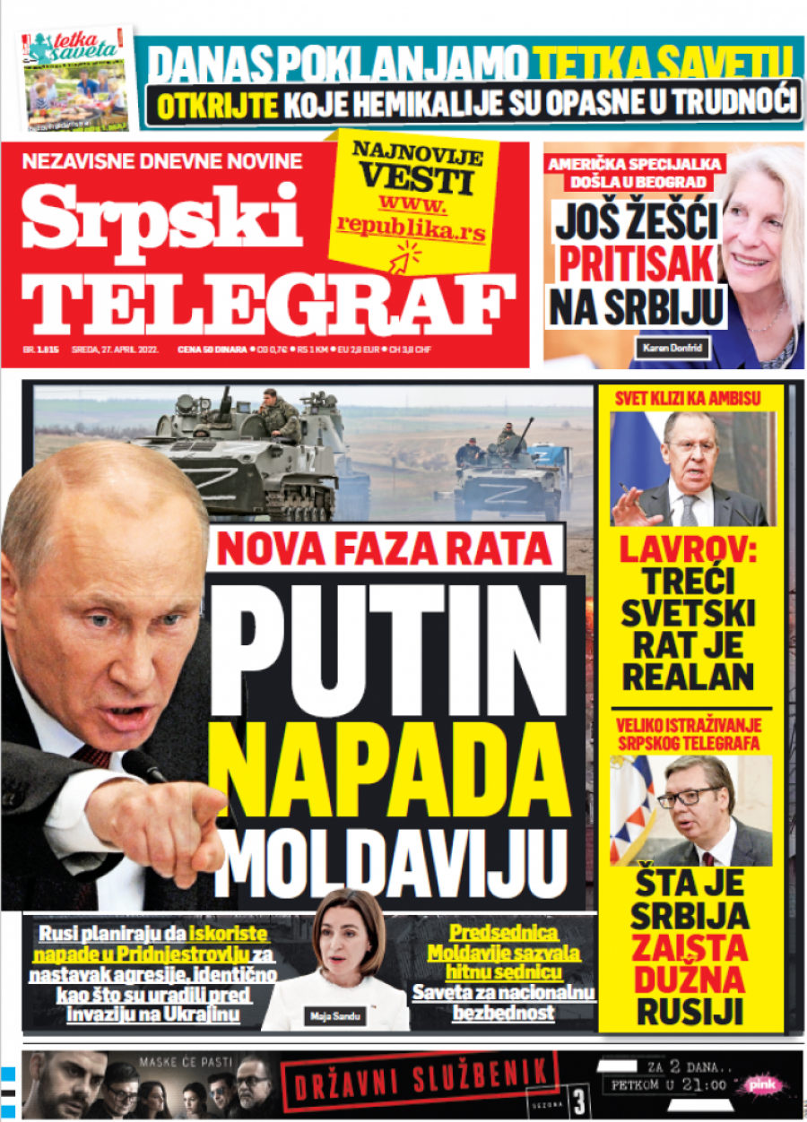 Srpski telegraf u štampanom izdanju za utorak 27. april donosi pregršt važnih i interesantnih priča.