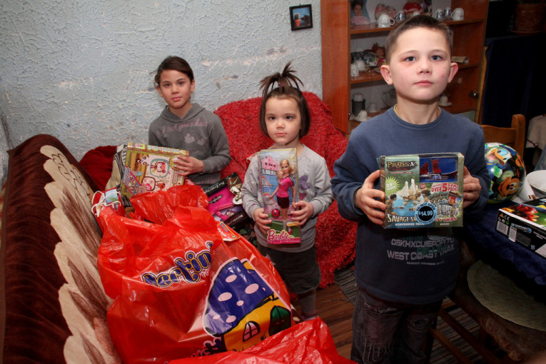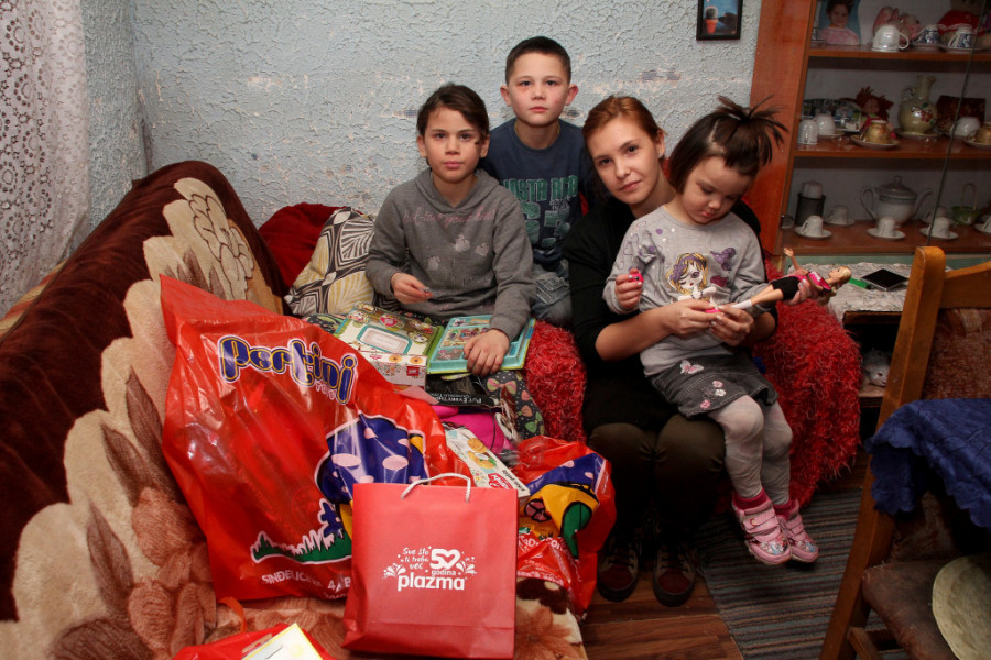 Roditelji Maša i Nikola nisu krili zadovoljstvo što smo ih se setili jer sa 24.000 dinara, kolika su im primanja, teško mogu deci da priušte novogodišnje paketiće.