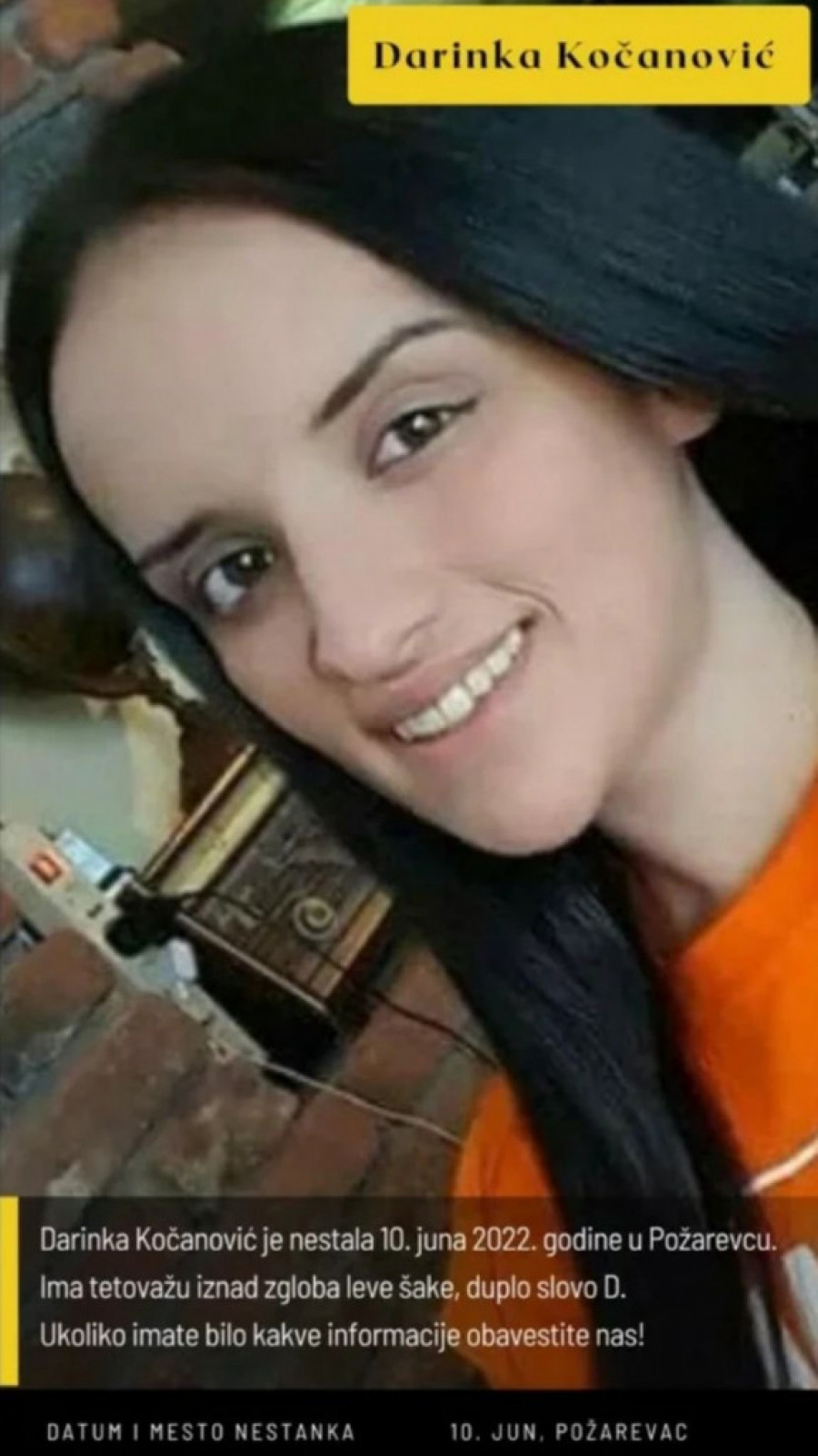 Darinka Kočanović (23) iz Požarevca nestala je 10. juna.