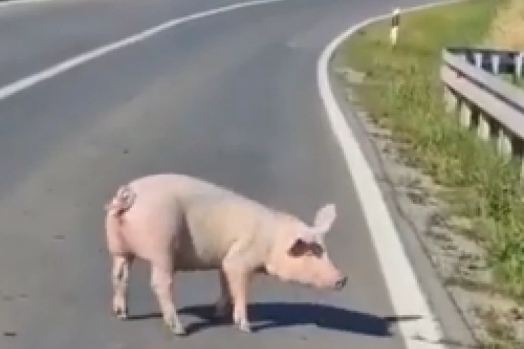 Na društvenim mrežama pojavio se snimak svinje nasred puta.