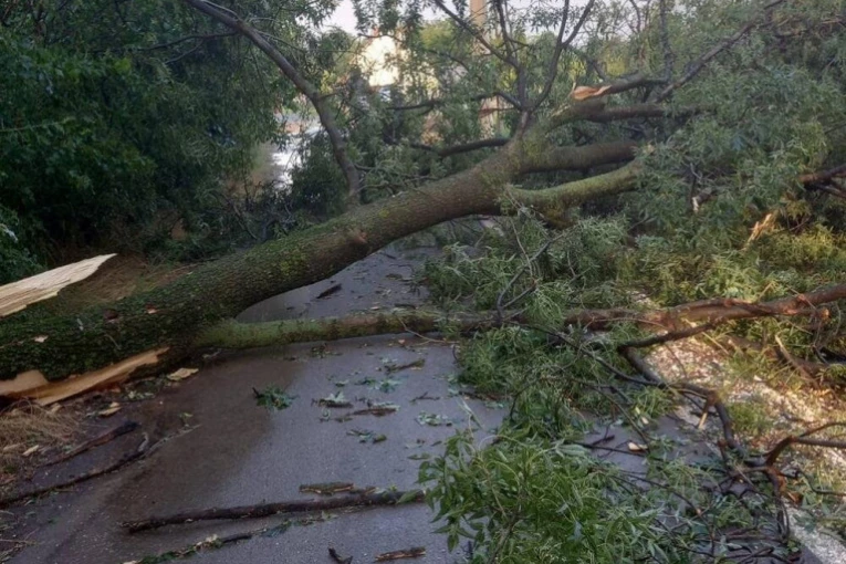 Vetar bio toliko jak da je čupao stabla iz korena, kao da se tornado sručio na selo. Haotične slike stižu iz Topole, saobraćaj u prekidu a na desetine kuća ostalo bez struje.