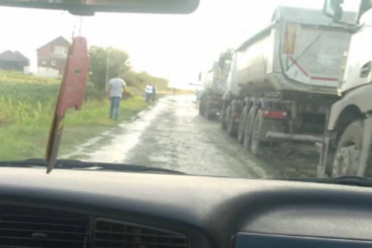 Usled zastoja na lokalnom putu formirana je dugačka kolona vozila u kojoj su ostala zaglavljena i dva autobusa sa školskom decom koja su se vraćala sa ekskurzije.