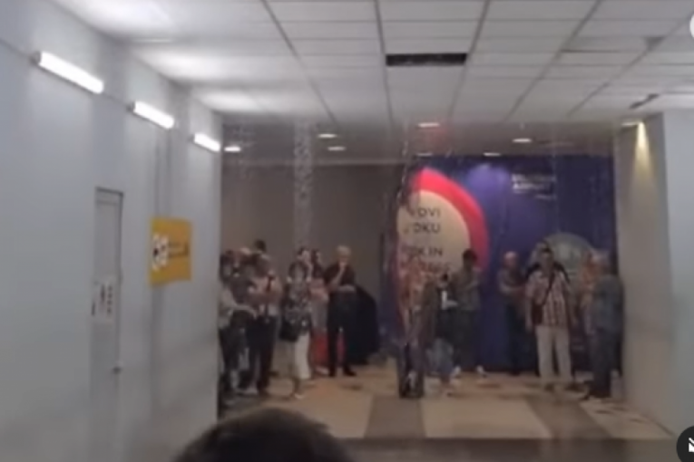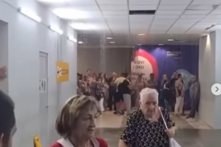 Takođe, kiša nije zaobišla ni unutrašnje delove zgrade, pa su putnici u čudu gledali vodu koja teče kroz plafon.