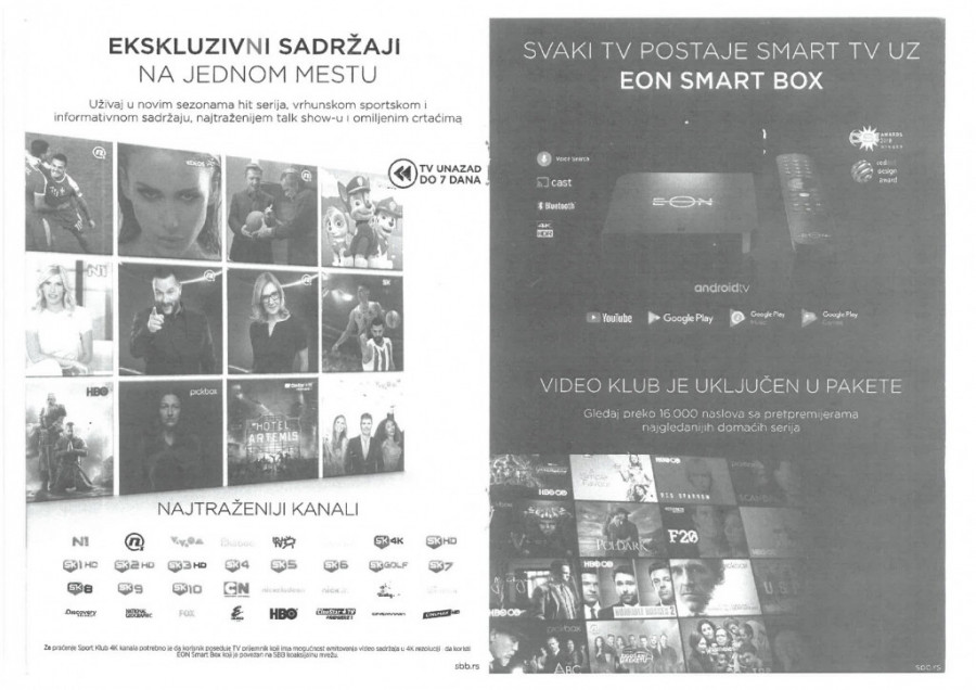Ovim odgovorom ukazujemo da nije istinita informacija da kablovski operator SBB reklamira medijske sadržaje koje nema u ponudi. Flajer, odnosno samo deo naslovne strane Flajera, koji je u okviru spornog teksta objavio medij republika.rs kao njegovu ilustraciju, a koji je navodno dobio od SBB-a i redakciji republika.rs poslao izvesni J.S., datira iz jula 2019, godine i korišćen je za akciju koja je trajala do 31. jula.2019. godine, kada su svi medijski sadržaji koji su oglašavani i bili u ponudi SBB-a. Činjenica da je flajer koji pominjete vezana isključivo za promotivnu kampanju iz jula 2019. godine je lako proverljiva i jasno i nedvosmisleno istaknuta u samom flajeru koji vam šaljemo u prilogu ovog Odgovora na informaciju.