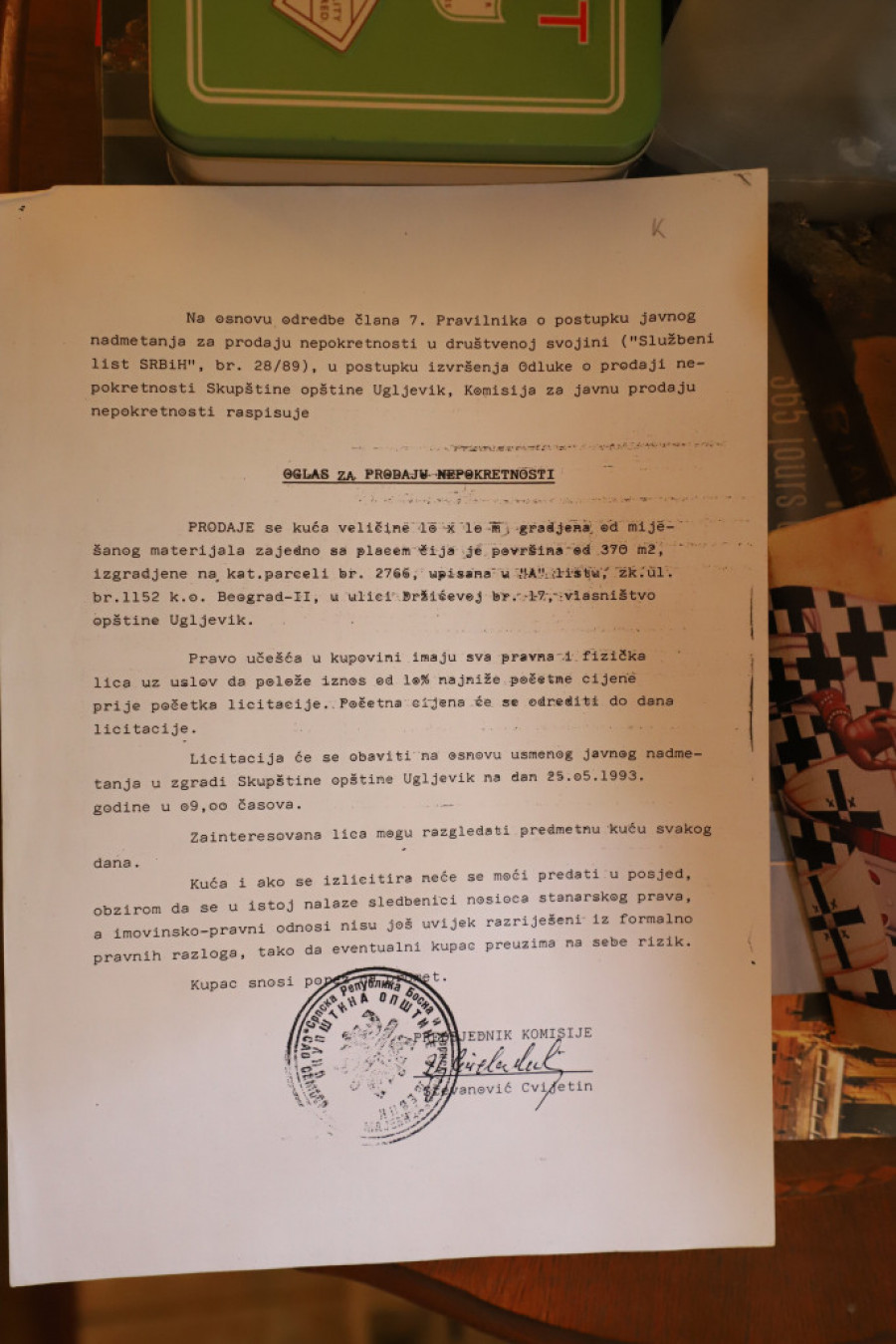 U oglasu kojim se najavljuje licitacija jasno stoji da je kuća neuseljiva jer u njoj žive zaštićeni stanari, te da se kupuje na sopstvenu odgovornost. I tu na scenu stupa Dimitrije Ivančević, otac sudije Vesne Miljuš.