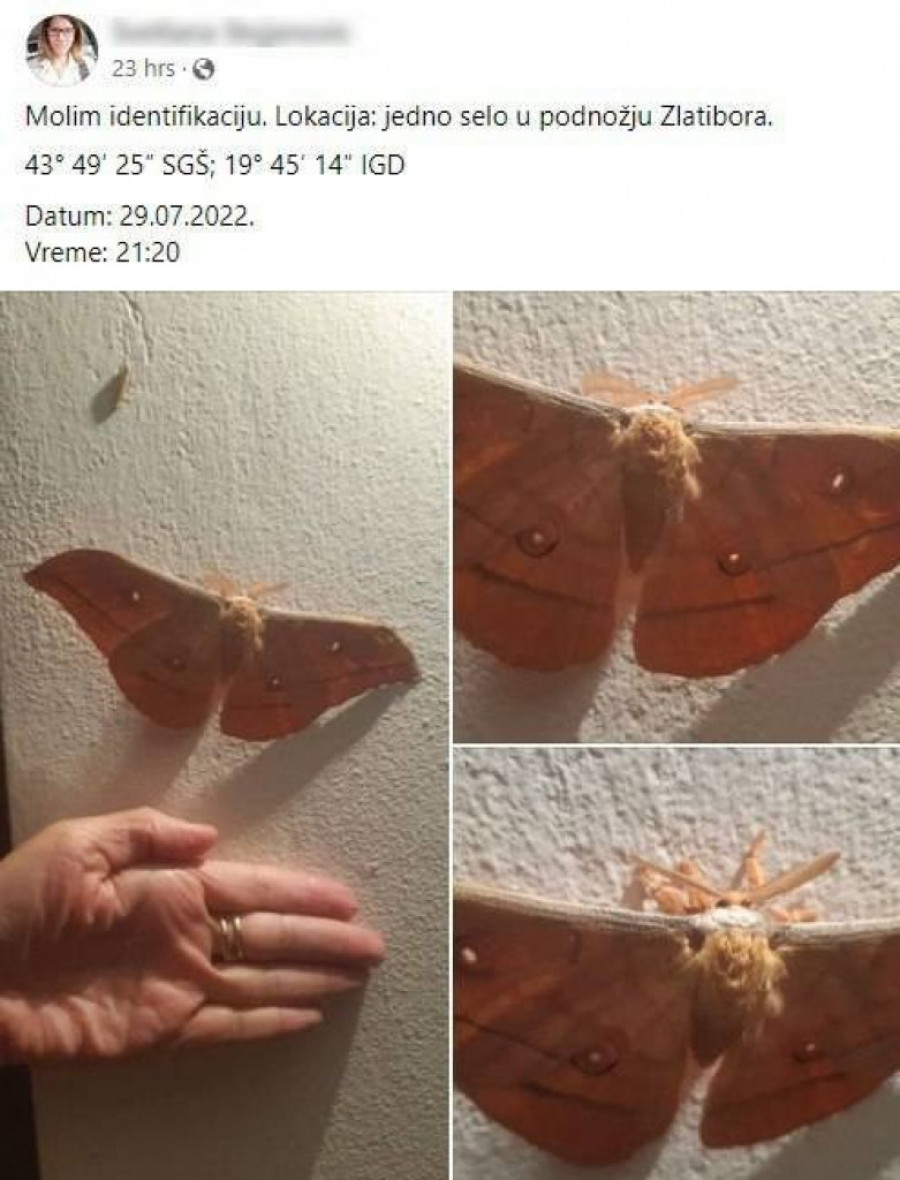 - Molim identifikaciju. Lokacija: jedno selo u podnožju Zlatibora. 43° 49′ 25″ SGŠ; 19° 45′ 14″ IGD Datum: 29.07.2022. Vreme: 21:20 - napisala je Stojanovićeva u grupi, a onda su se ređali komentari očaranih korisnika.