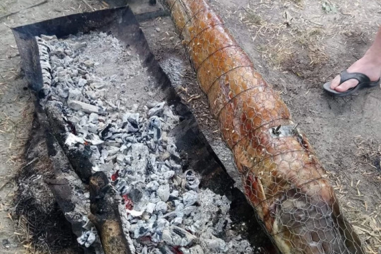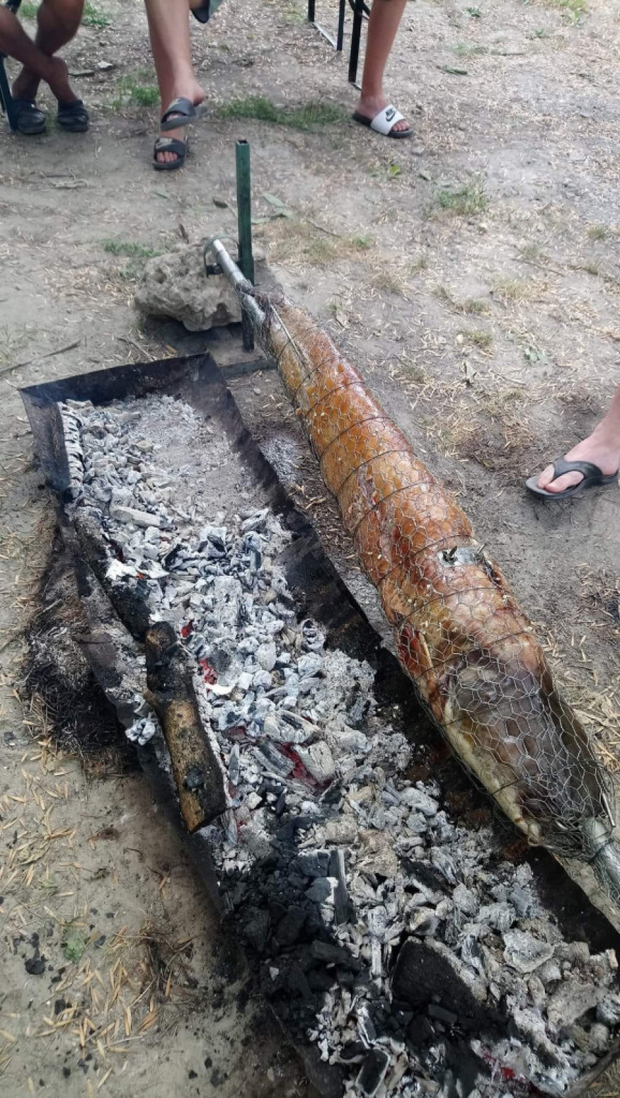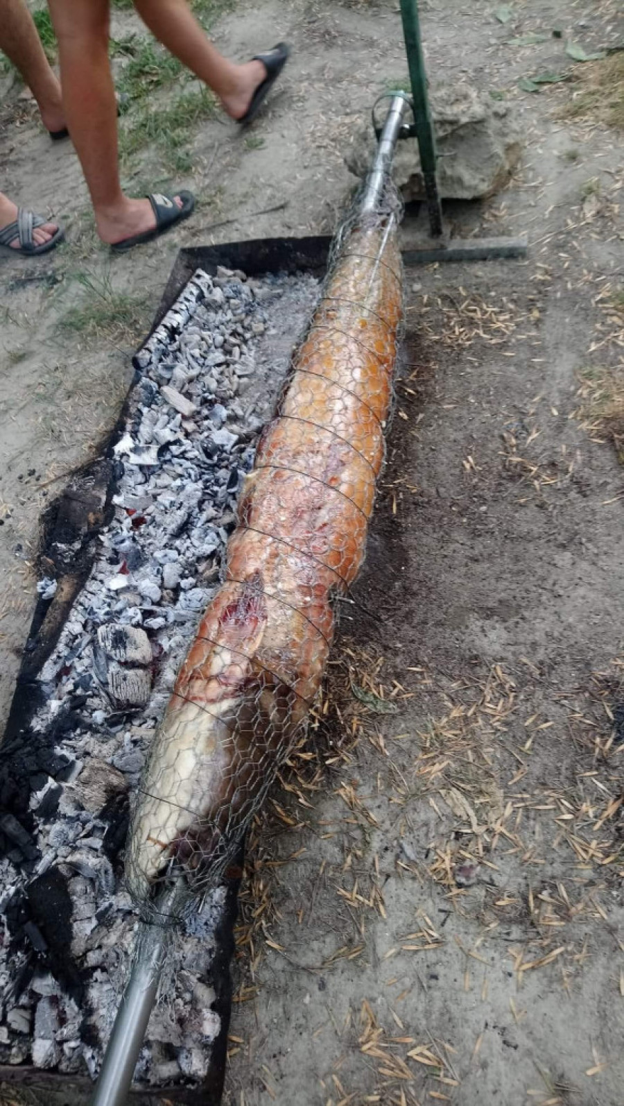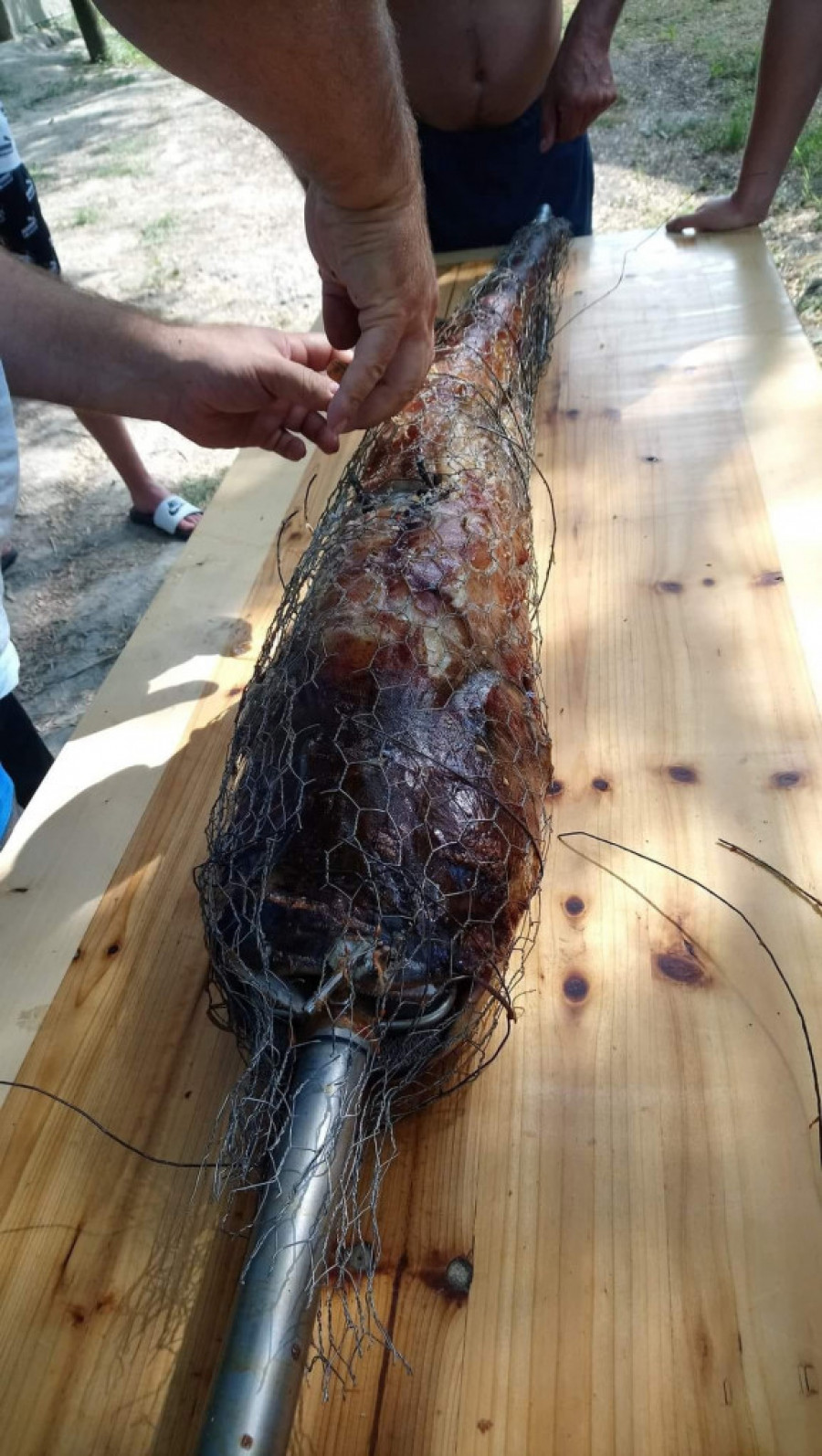 JESTE LI PROBALI SOMA NA RAŽNJU?! Momci ulovili kapitalca od 17 kg u Dunavu i spremili ga na neobičan način: Jedva su kosti ostale! (FOTO)