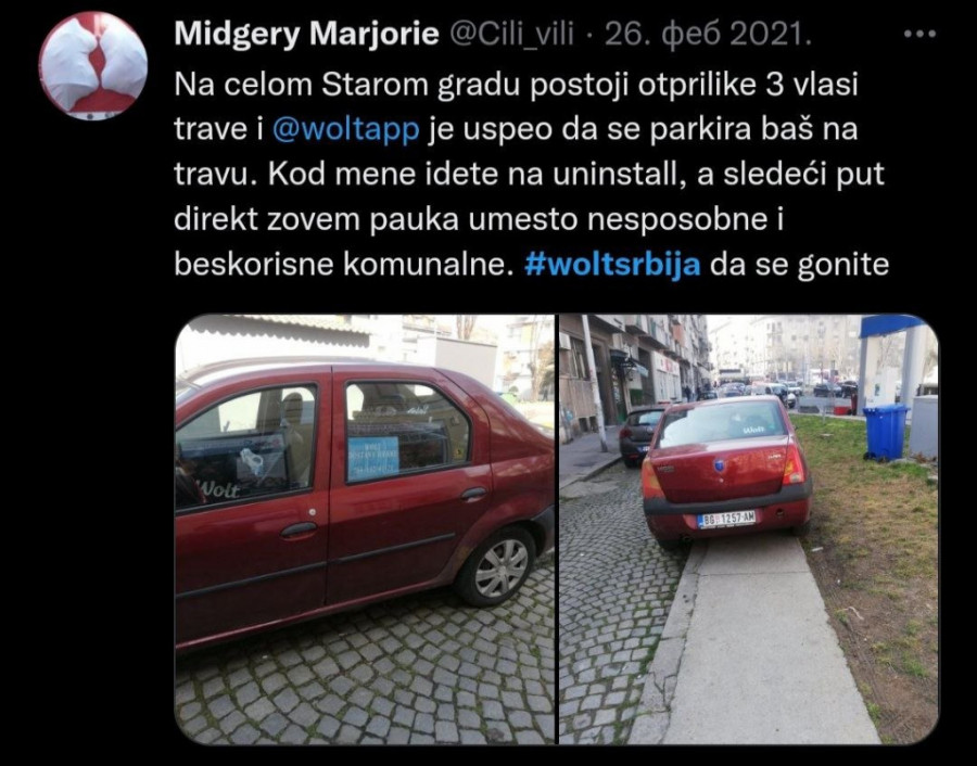 Uzevši u obzir da se dešavaju ovakve situacije, krajnje je nepotrebno, čak i bezobrazno to što se svojim prekršajima Wolt hvali na zvaničnom Tviter profilu.