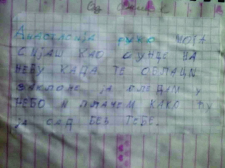 - Anastasija, ružice moja, sijaš kao sunce na nebu. Kada te oblaci zaklone, ja gledam u nebo i plačem. Kako ću ja bez tebe - napisao je Filip u svom poslednjem pismu.