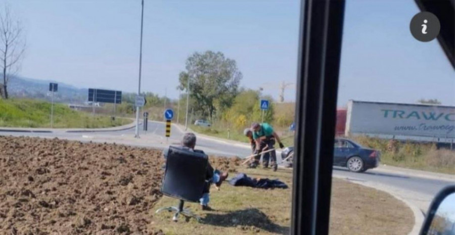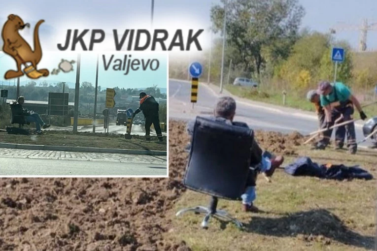 Skandalozan prizor poslovođe valjevskog JKP Vidrak D.G. koji iz fotelje posmatra radnike ovog preduzeća kako riljaju i okopavaju zelenu površinu osvanuo je na društvenim mrežama.