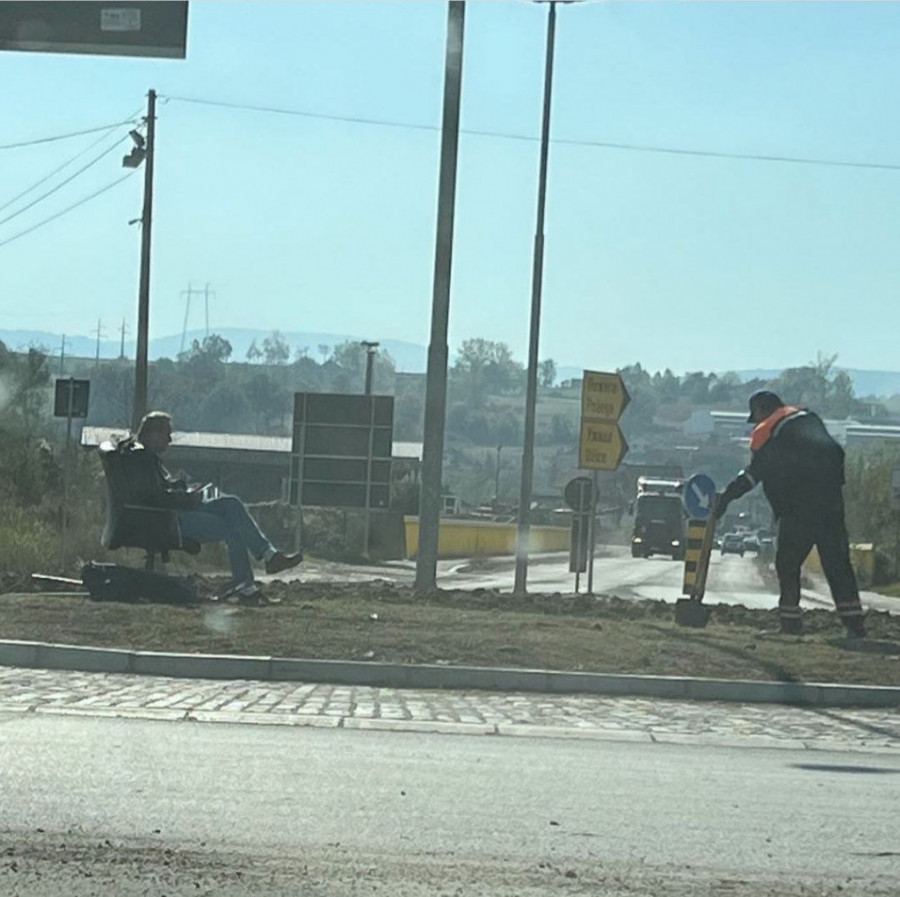 Kako navode lokalni mediji, šefovsku stolicu D.G. je doneo sa obližnje deponije u kružni tok i sve vreme dok je sedeo prekrštenih nogu, radnici su morali da ga obilaze dok rade.