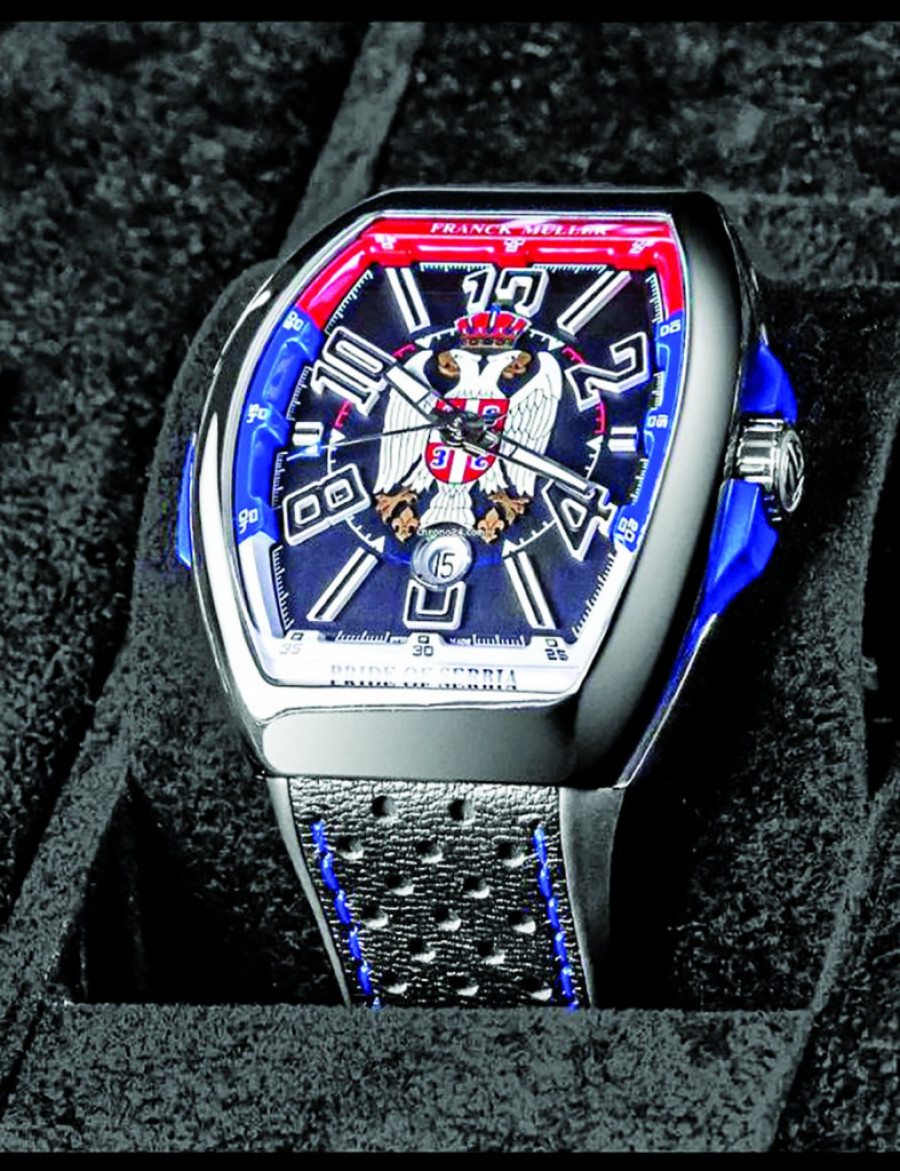 - Prvi put se desilo da jedan takav proizvođač napravi izdanje specijalno za Srbiju, u bojama Srbije i s našim grbom, na kojem je dvoglavi orao. Samo 25 odabranih značajnih ljudi Srbije moći će da poseduje ovaj sat. Svaki komad ima serijski broj i zabranjeno je da se prodaje licima iz kriminogene sredine - objašnjava izvor Srpskog telegrafa, sagovornik blizak kompaniji "Frank Miler".