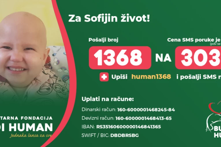 POMOZIMO SOFIJI KARADŽIĆ DA POBEDI BITKU ZA ŽIVOT: Pošaljite SMS 1368 na 3030!