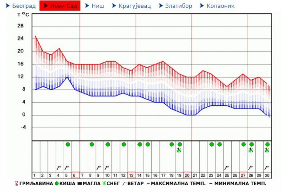 Dnevna temperatura do subote u većini mesta od 17 do 23, a zatim u padu na vrednosti od 14 do 19 stepeni.