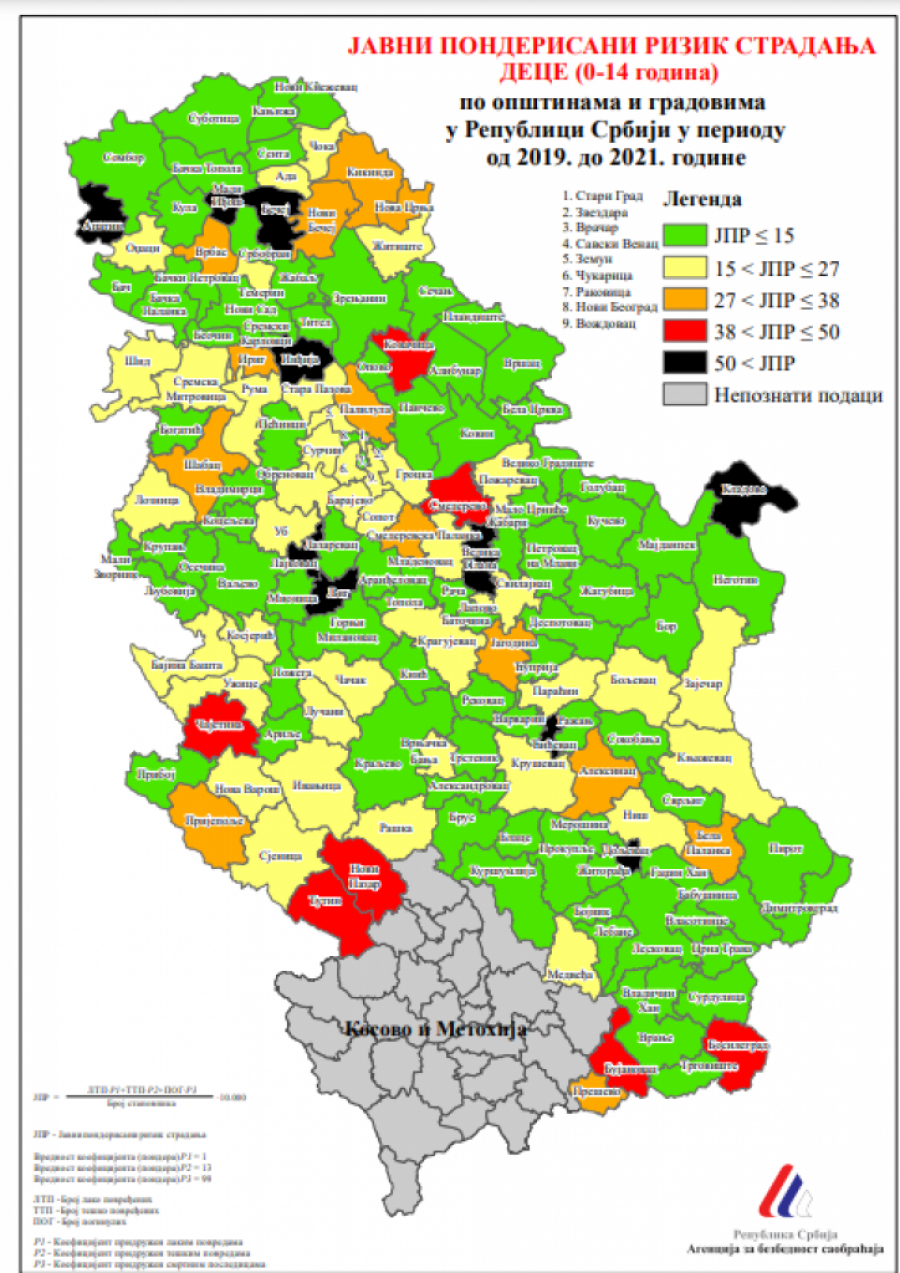 Analiza pokazuje da su među najugroženijim su putnici 0-14 godina u Kladovu, Malom Iđošu, Ljigu, Doljevcu, Bečeju, Apatinu i Lajkovcu.