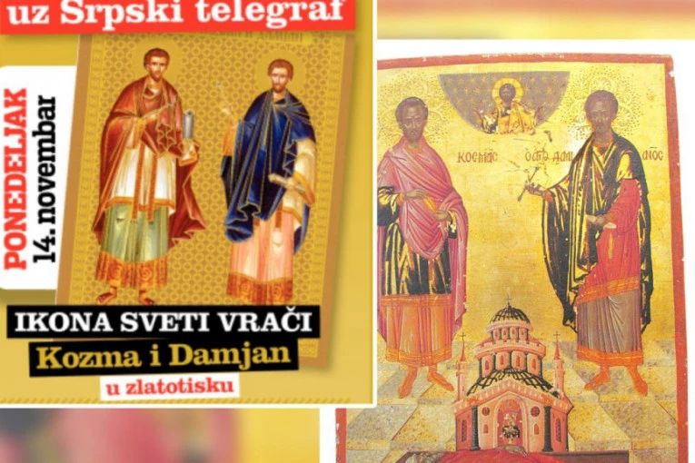 Uz današnje štampano izdanje Srpskog telegrafa na poklon dobijate ikonu Svetih vrača Kozme i Damjana u zlatotisku.
